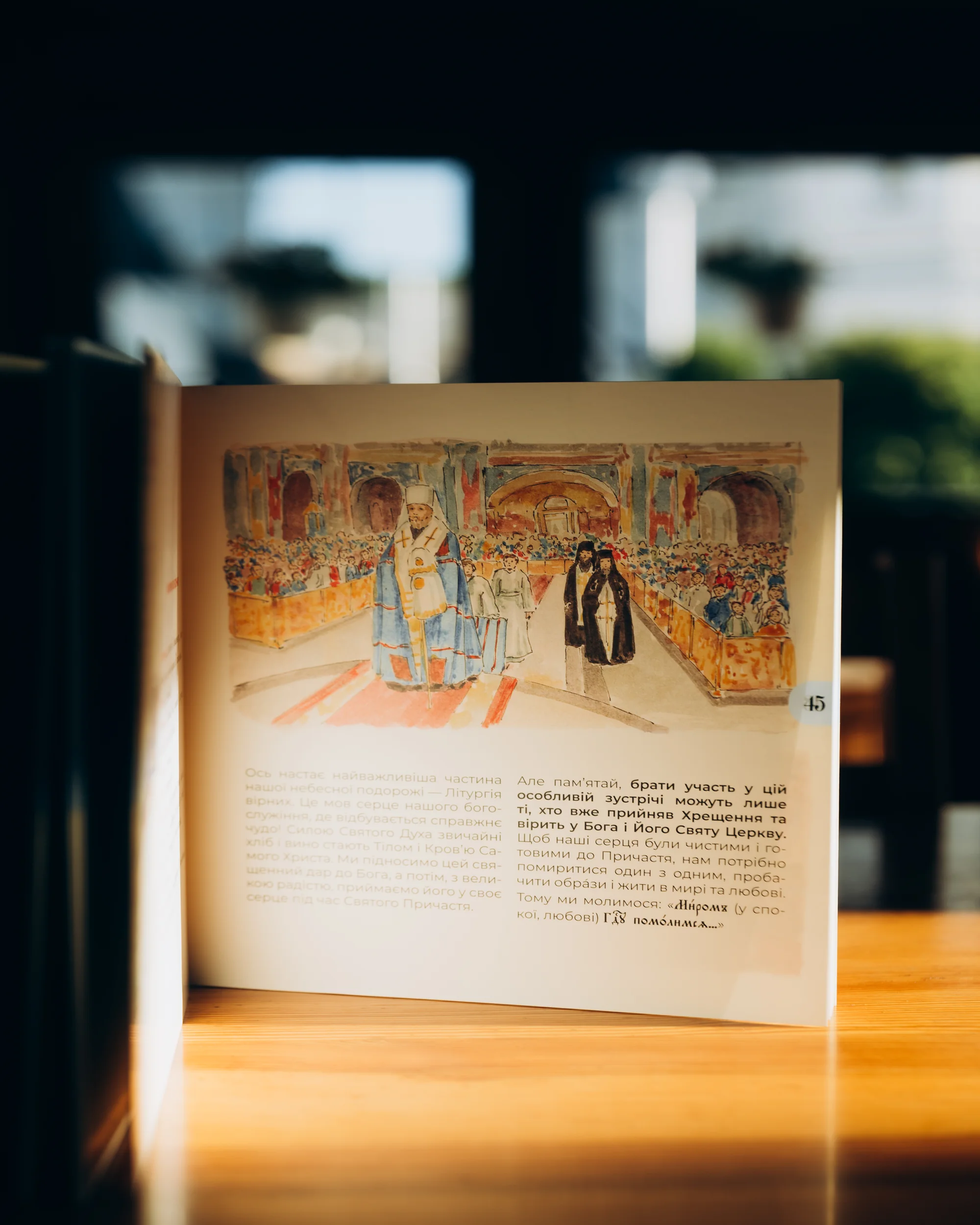 • Ручні ілюстрації: кожна сторінка наповнена теплими, живими малюнками, які допомагають сприймати Літургію не лише розумом, а й серцем.